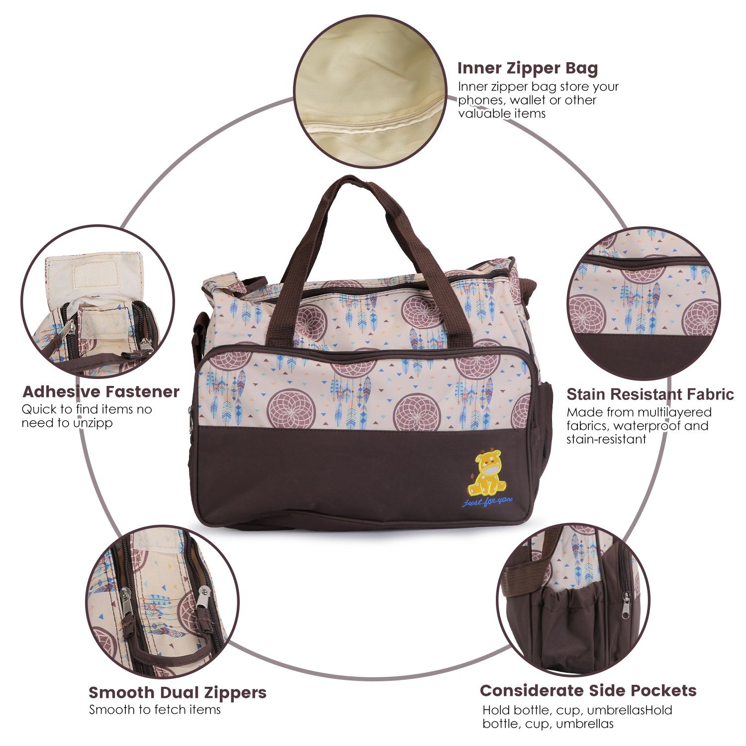 *Thoughtful Gift For Parents*:Parenting involves juggling countless tasks,and our 5pcs baby diaper bag set caters to all your needs. Mix and match the parts of the set for each trip,whether going to daycare,work,shopping or on a trip. Also a thoughtful gift choice for new moms and dads.