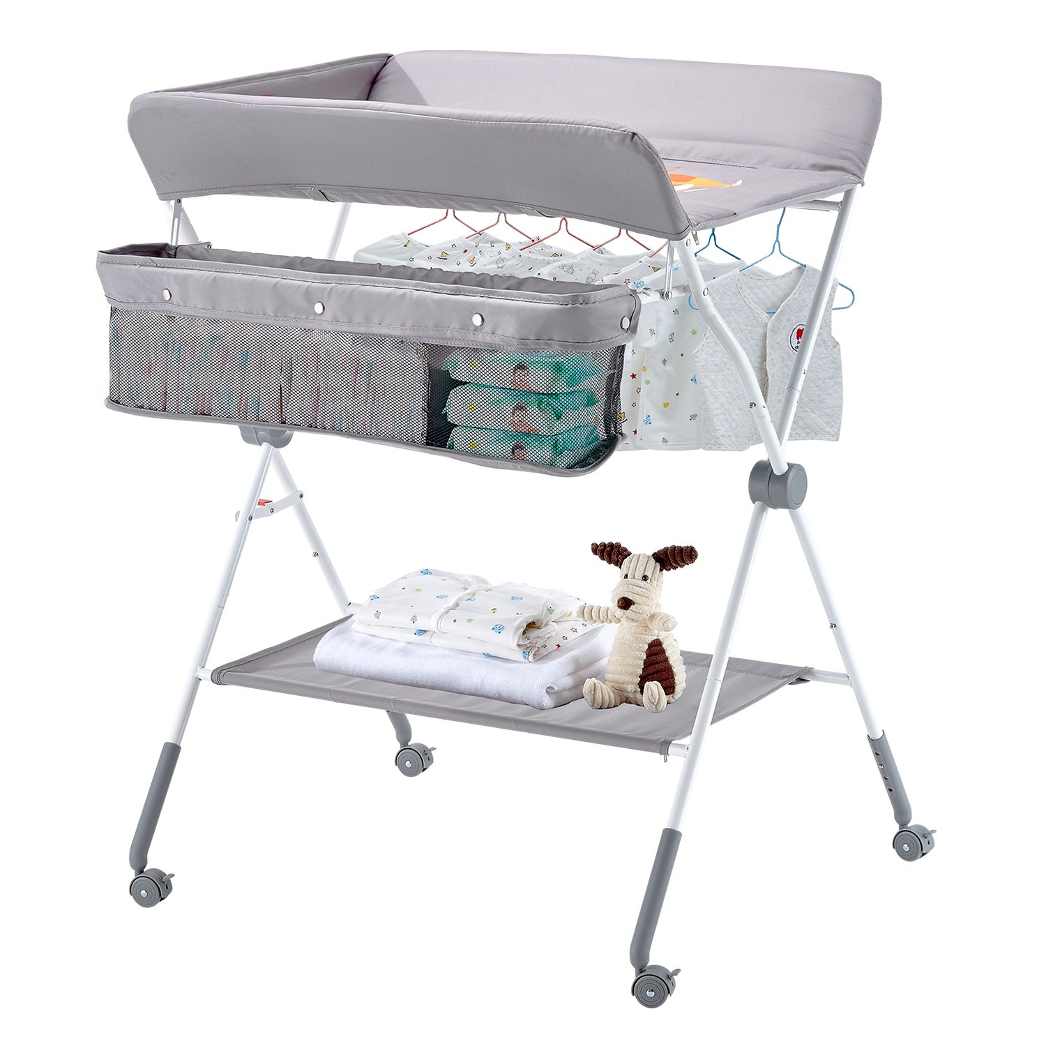 Baby Changing Table, Foldable Diaper Change Station with Side Basket, Adjustable Height Portable Changing Table with Lockable Wheels Baby Changing Table, Foldable Diaper Change Station with Side Basket, Adjustable Height Portable Changing Table with Lockable Wheels Baby Changing Table, Foldable Diaper Change Station with Side Basket, Adjustable Height Portable Changing Table with Lockable Wheels