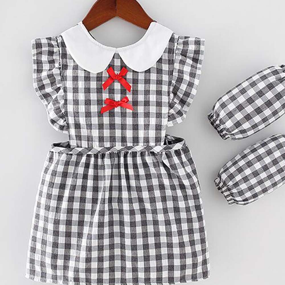 Black Grid Baby Smock Girls Inner Waterproof Apron Bibs Kids Apron Princess Eating Painting Apron Black Grid Baby Smock Girls Inner Waterproof Apron Bibs Kids Apron Princess Eating Painting Apron