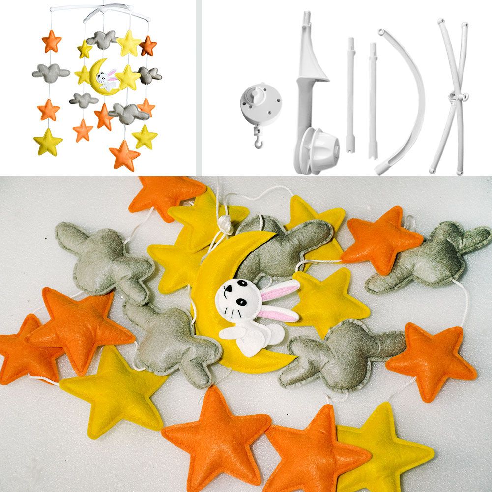 Home > Handmade Baby Boy Crib Mobile Non-Woven Musical Mobile Crib Toy Nursery Room Decor, Stars and Rabbit