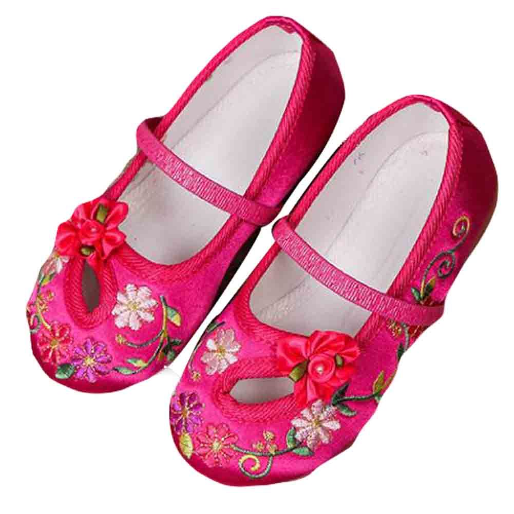 Hot Pink - Chinese Traditional Embroidery Shoes Flower Ballet Flats Girls Loafer