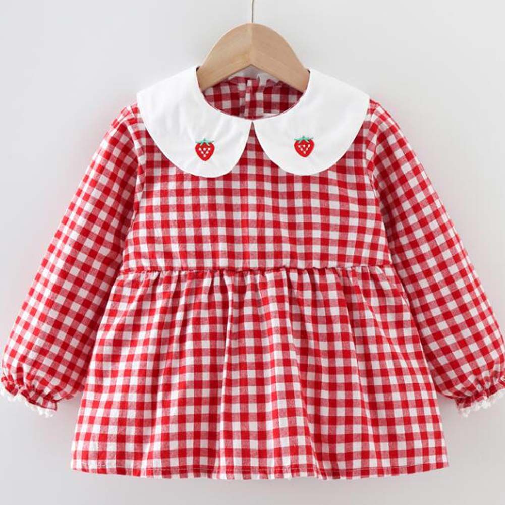 Red Grid Baby Eating Smock Infant Inner Waterproof Bibs Girls Long Sleeve Painting Smock Apron