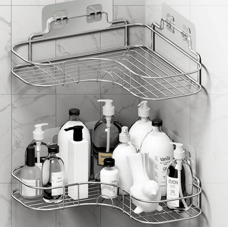 Drain Fast The corner shower caddy comes in an open-grid design for maximum air ventilation and water dripping away. Keep your bath products clean. The grid can prevent some small objects from falling. Our bathroom shelf can bear up to 30 lbs, DO NOT press the shampoo hard when you place it on the shower caddy. It might cause an exceeding the load-bearing limit. Space Organizer[Our shower caddies only fit 90 right angle corner, NOT suitable for round corners]. These bathroom shelves are designed for organizing your space, ideal for storing your shampoo, body wash, cream, soap and more. Not only can use them in the bathroom but also in the kitchen, bedroom, any place you want. Rustproof MaterialsMade of SUS304 stainless steel, which made the corner shower caddies rustproof, stable, durable, and longstanding use. Avoiding rust stains on the floor or walls, keep your space clean and tidy. [If it is rust during use or you have any questions, please feel free to contact us]. No Drilling RequiredPowerful adhesive comes with the bath shelf ensuring the shower rack stable, if you want to move the shower shelves to another place, just need to install new adhesives. REMOVE GUIDE: Use a hairdryer to heat the sticker, tear it off easily when heat enough.